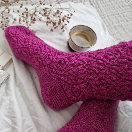 This collection is characterized by the intricate lacepattern that is incorporated into all models. It will contain models for babies, children and adults.