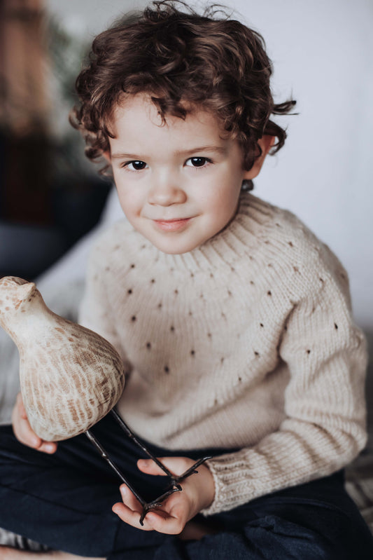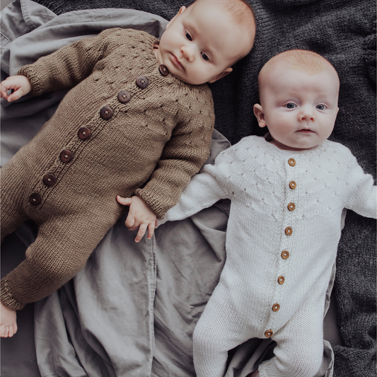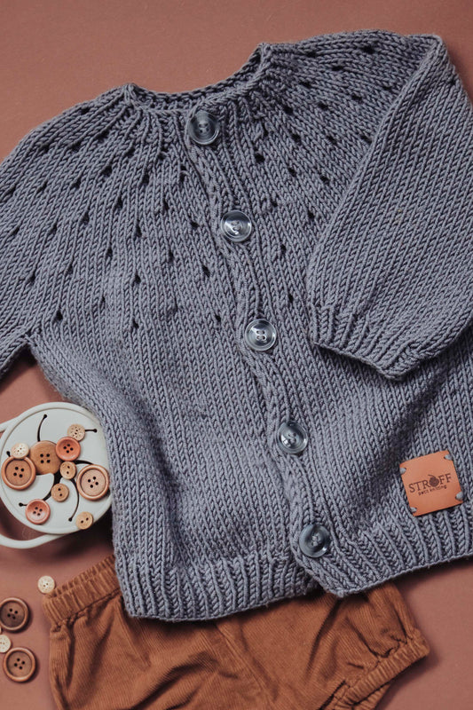 They are knitted top down in one piece with a simple eyelet lace pattern in the yoke.