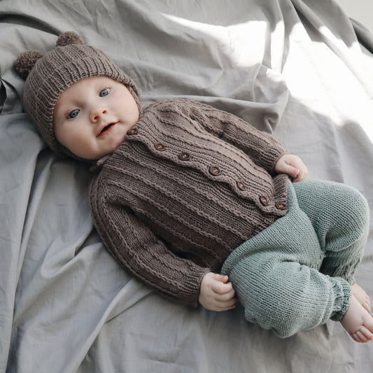 "Night After Night" is the name of our collection of slip stitch raglan sweaters, hats, jackets and trousers.