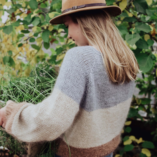 Here you will find all our sweaters and jackets, which are knitted top down in one piece. We have classic top down raglans, and also some jumpers that are worked top down with a round yoke. The concept is the same, you start at the neck and work downwards with regular increases. This allows you to try the sweater on again and again to adjust the fit and especially the length exactly.