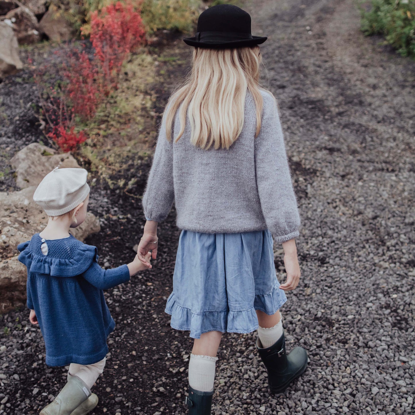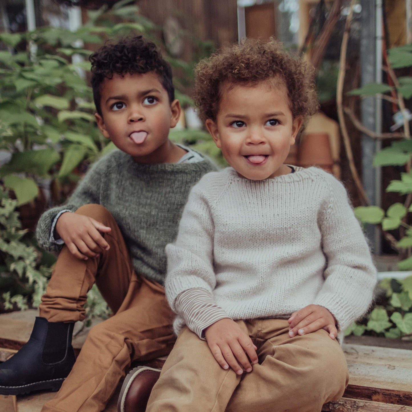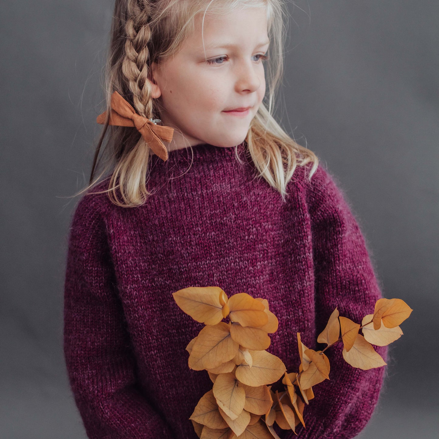This children's sweater is knitted as a raglan from the top (RVO) in one piece in the round and without seams. It consists of one thread of soft merino wool and one thread of mohair and silk. This makes it very light, airy and still warm.