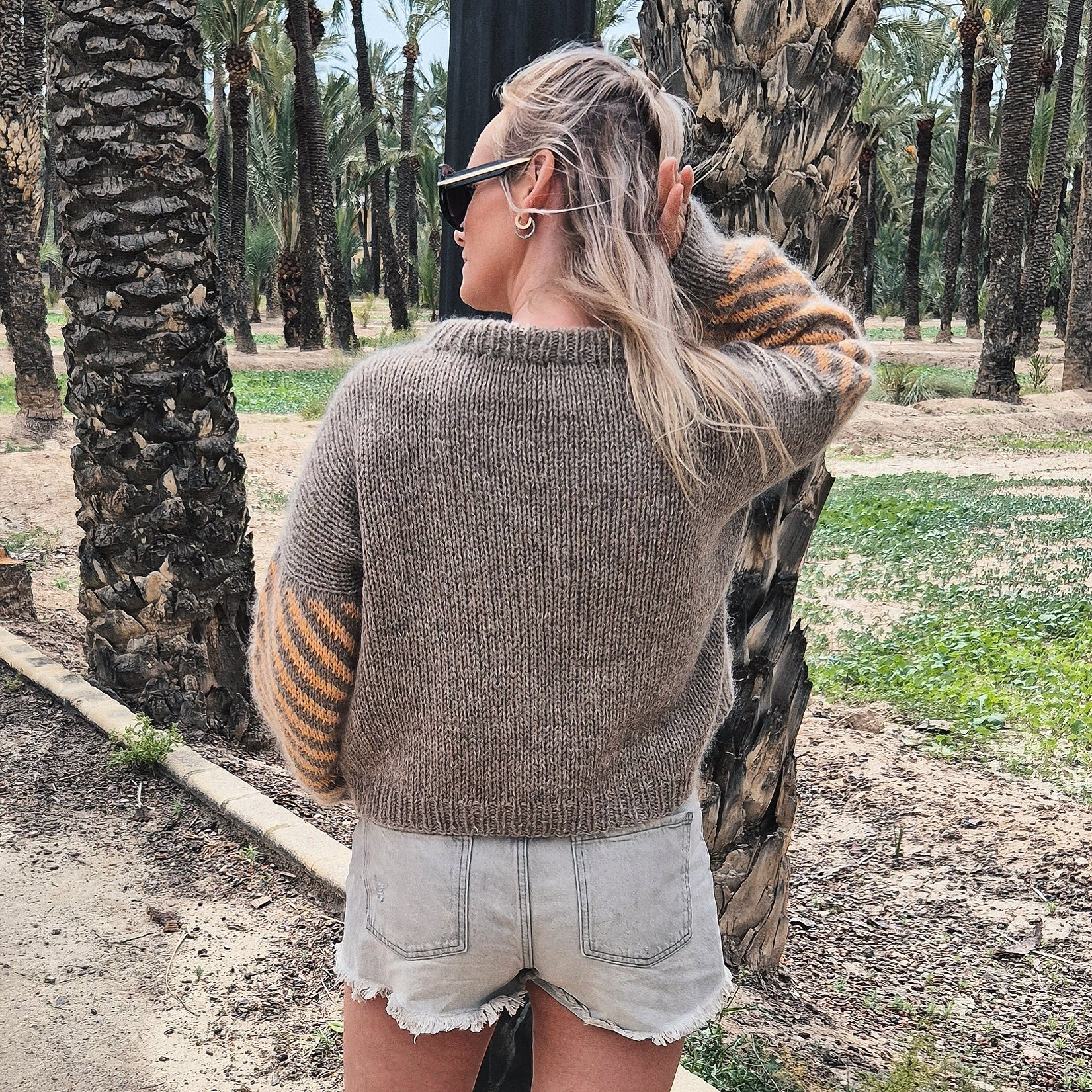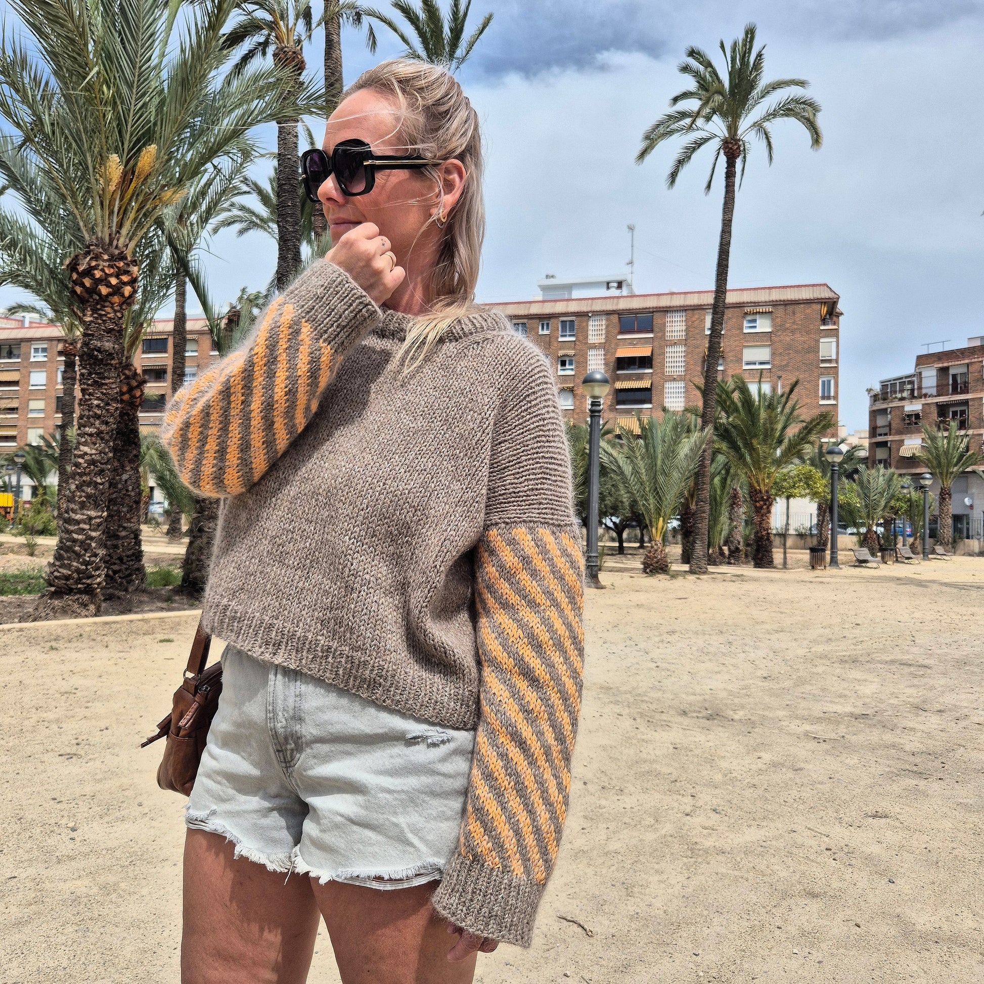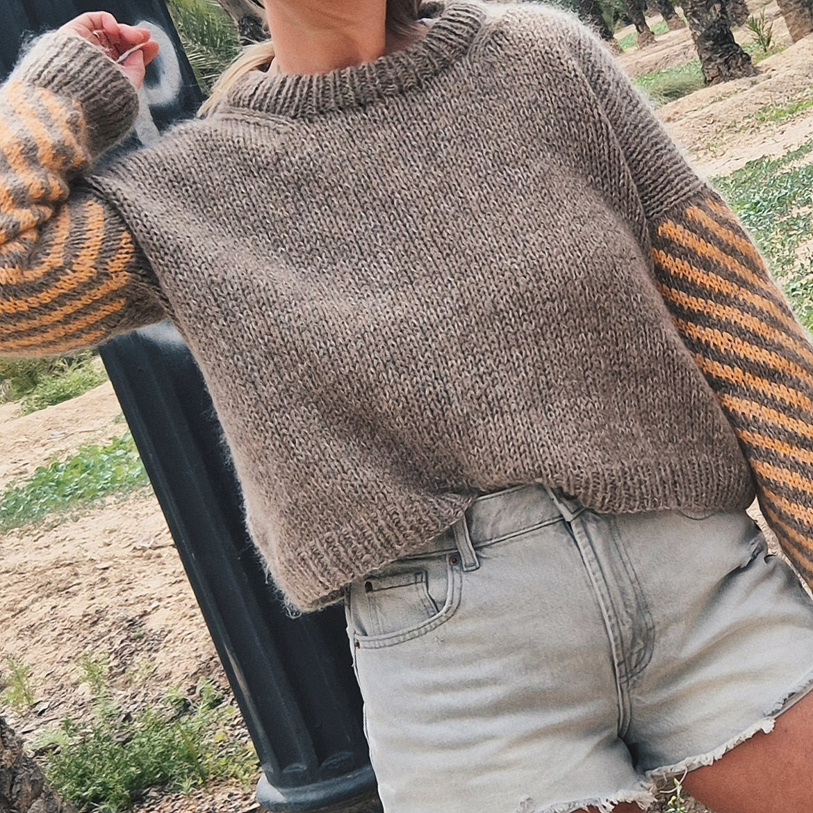 Björg wird von unten nach oben gestrickt. Rumpf und Ärmel werden in Runden gestrickt, Vorder- und Rückenteil in Hin- und Rückreihen.