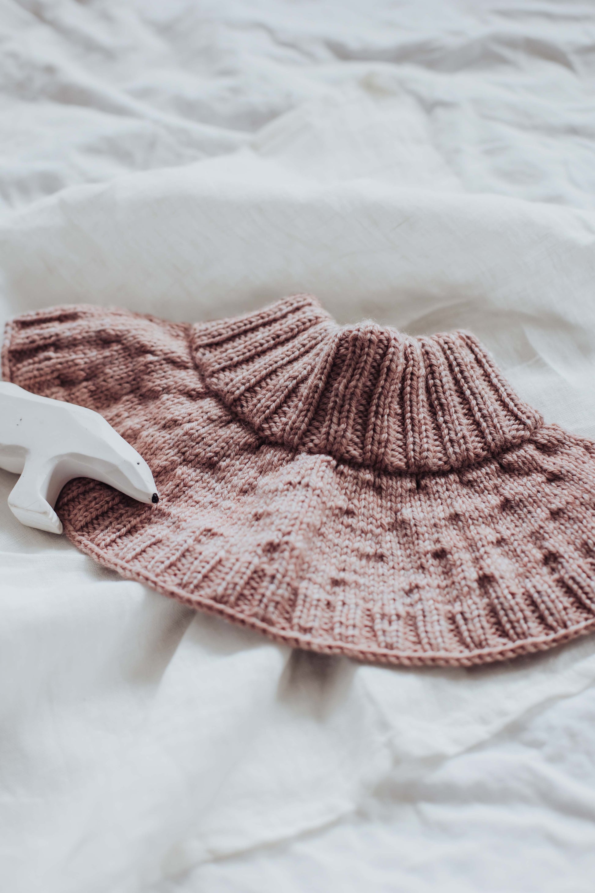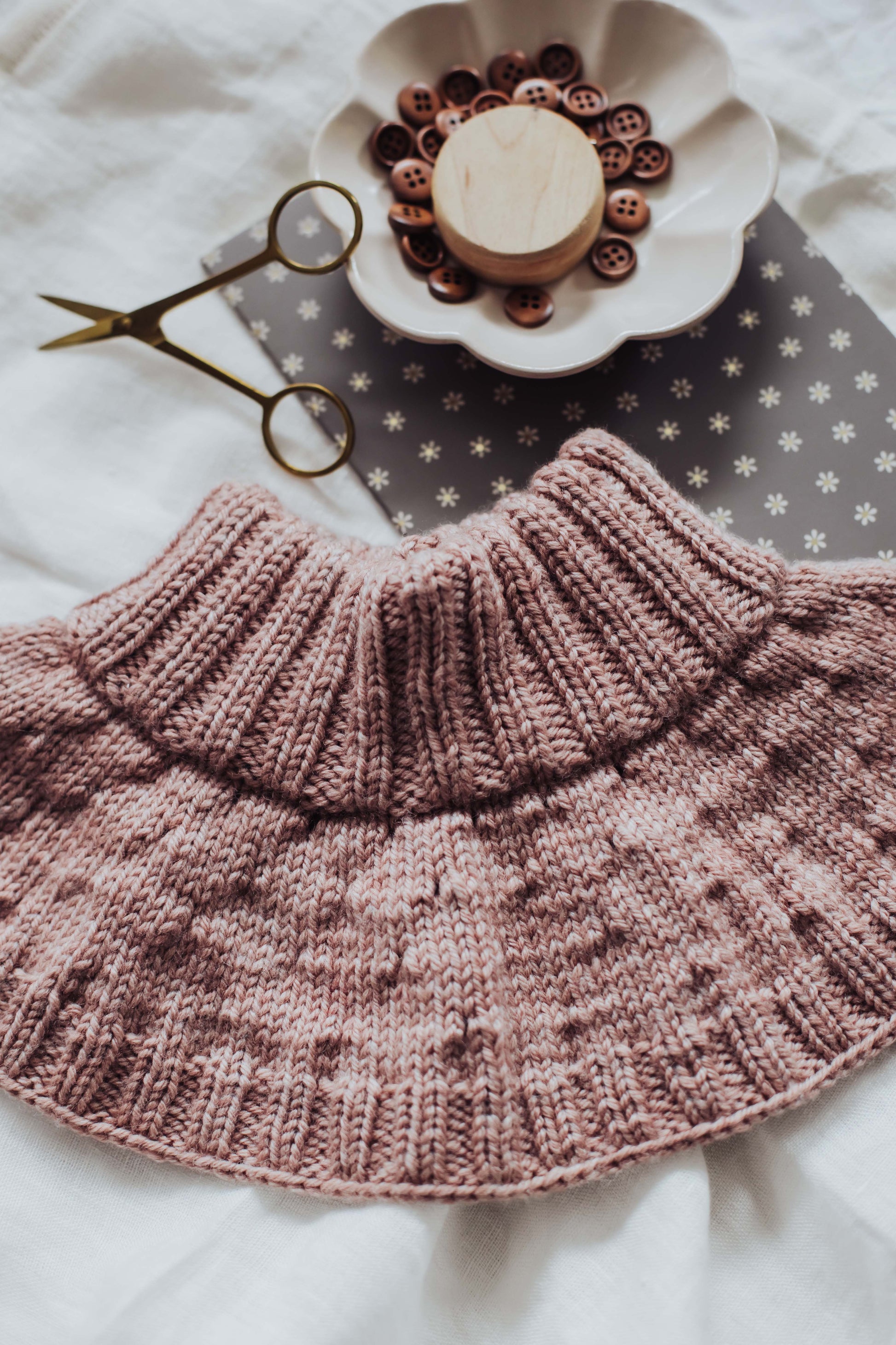 Die Maschenprobe bei diesem Kragen beträgt 24 Maschen auf 10 cm. Bei mir entspricht das einer Nadelstärke von 3,5 mm.